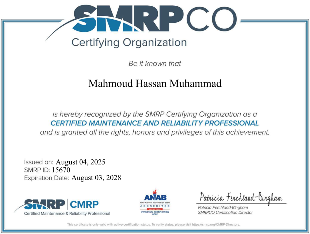 Certified Maintenance & Reliability Professional